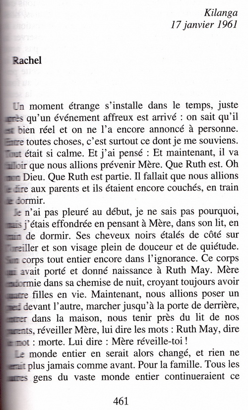Un pasteur baptiste est parti en mission au Congo belge en 1960, avec sa femme et leur quatre filles... La plus jeune, Ruth May, mordue par un serpent, meurt... Ses sœurs qui ont assisté à la scène, doivent aller avertir les parents...