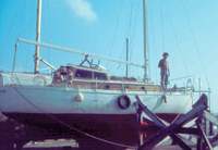 Toujours avec Michel, nous avons sauté le pas, et avons acquis un magnifique, très spacieux (nous avions déjà deux garçons, plus mes trois filles, et Michel, trois) et très ancien voilier, qui nous a permis de longues croisières tous les ans, jusqu'en 1980. L'Orégano (Origan, en Espagnol) était un vieux voilier, construit à Marseille en 1929. Sa coque, de construction traditionnelle, mesurait plus de 9 m et avait une poupe en forme de canoë. Elle avait été repeinte avec une peinture à base de caoutchouc, ce qui la rendait parfaitement étanche, ce qui s'est avéré être une belle erreur : le bois jouant, il y avait à la longue des entrées d'eau, et ne respirant pas normalement, il a fini par pourrir par endroit, et nous avons du tout gratter un an après. Son gréement avait été modernisé, mais il conservait ses bastaques, ce qui ne facilitait pas les changements de bord. Plus tard, nous déciderons de les remplacer par un seul étai arrière, ce qui sera la source de gros ennuis. D'autre part, le cockpit avait été rendu étanche et la cabine avait été rehaussée. Enfin, l'annexe était un youyou d'époque, gréé avec une voilure d'Optimiste, et surtout, il y avait huit couchages à bord : de quoi loger tous les enfants présents et à venir ! C'est ce qui nous a décidé, Michel et moi ! |