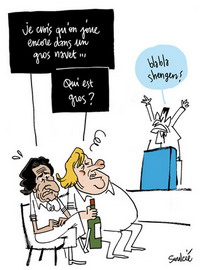 Le même jour (20/1/2012): "Mauvais calendrier pour Nicolas Sarkozy. Le président de la République comptait défendre le "Made in France" jeudi 19 janvier dans l'usine Seb à Pont-Evêque (Isère) alors que, la veille, journée marquée par le sommet social à l'Elysée, les salariés de la dernière usine du fabricant de lingerie Lejaby dans l'Hexagone avaient appris la fermeture du site d'Yssingeaux (Haute-Loire). Déjà délocalisée à 93 %, la production de l'entreprise sera désormais intégralement sous-traitée en Tunisie." (Voir "assomées social")